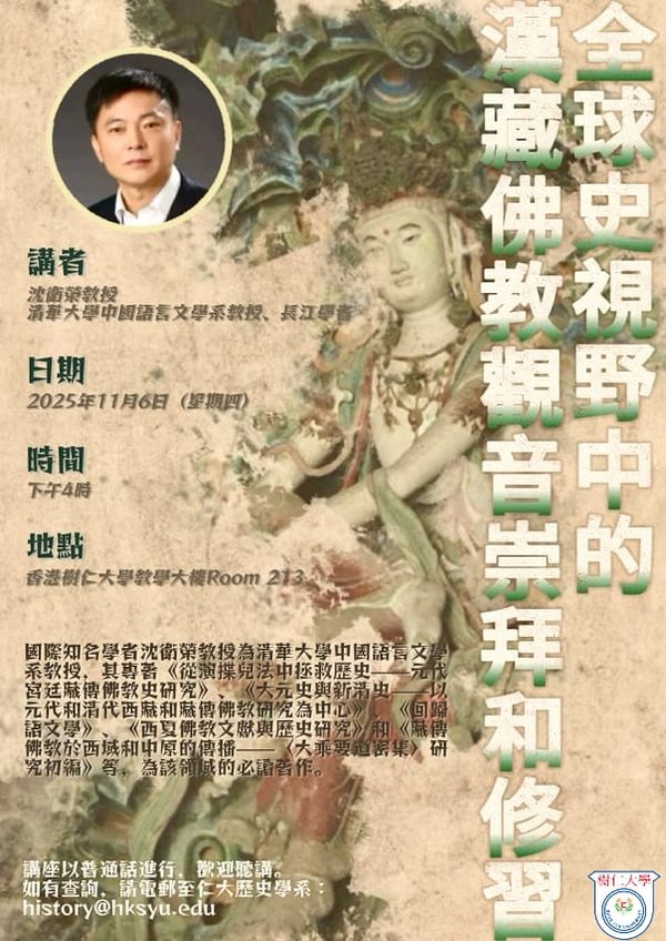 香港樹仁大學將於11月6日(星期四)舉行學術講座!是次講座邀請了清華大學中國語言文學系教授、長江學者沈偉榮教授蒞臨主講,主題圍繞元代宮廷藏傳佛教、西夏佛教文獻等研究領域。