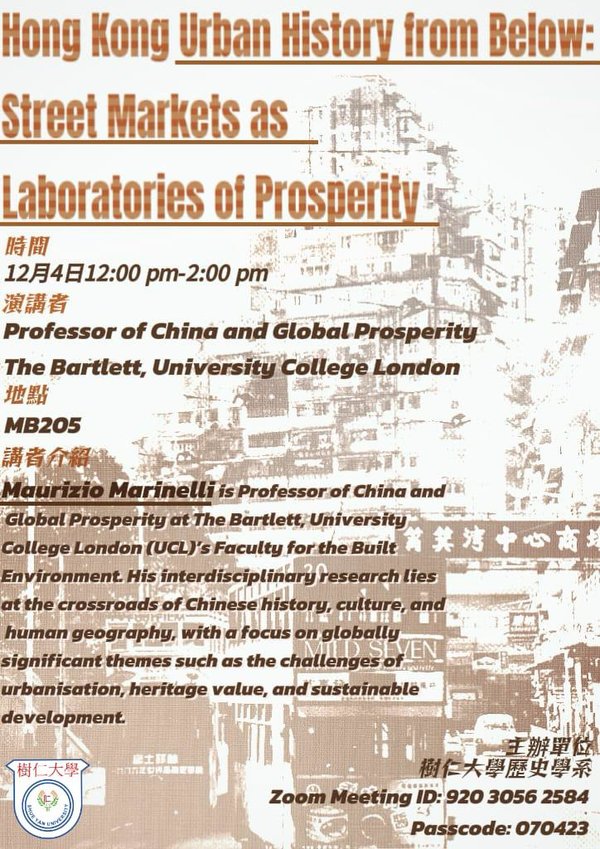 Title: Hong Kong Urban History from Below: Street Markets as Laboratories of Prosperity